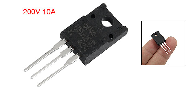 Product Name Rectifier Diode Model No. U10A20C Drain Source Voltage 200V Drain Current 10A Package Type TO220 Mounting Hole Diameter 3.2mm/ 1/8" Pin Size 13 x 5.5mm/ 0.51" x 0.22" ( L* W) Total Size 29 x 10 x 4.5mm/ 1.14" x 0.39" x 0.18" (L*W*H) Weight 2.9g Package 1 x Rectifier Diode - Reviews