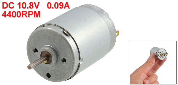 Product Name DC Micro Motor Rated Voltage DC 10.8V Current(no load) 0.09A Speed(no load) 4400RPM Body Size 29 x 37mm / 1.14" x 1.45" (D*H) Shaft Dia. 2mm/ 0.079" Total Length 63mm / 2.6" Main Color Silver Tone Material Metal Weight 81g Package 1 x DC Micro Motor - Reviews