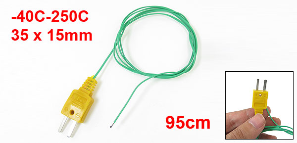 Product Name Thermocouple Model TP01 K Type Temperature Range -40C-250C Probe Size 35 x 15mm/ 1.4" x 0.59" (L*W) Total Length 95cm/ 37" External Material Plastic, Metal, Nylon Main Color Yellow, Silver Tone, Green Net Weight 9g Package Content 1 x Thermocouple - Reviews