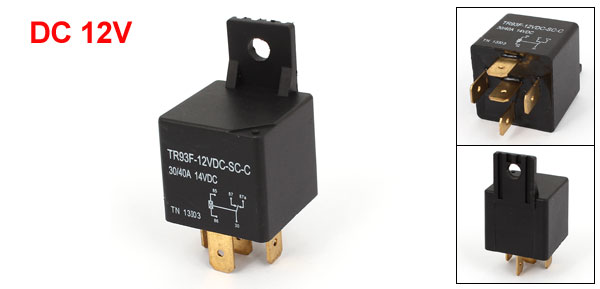 Product Name Power Relay Model TR93F-12VDC-SC-C for Car Auto Rating Voltage DC 12V Contact Capacity DC 14V 30/40A Type SPDT (1NO 1NC) Pin Quantities 5 Pin Size 10 x 6mm/0.4" x 0.24"(L*W) Hole Dia 5.6mm/0.22" Body Size 26 x 26 x 24mm/1" x 1" x 0.941"(L*W*H) Total Height 51mm/2" Shell Material Plastic, Metal, Electric Part Main Color Black Net Weight 33g Package Content 1 x Power Relay  - Reviews