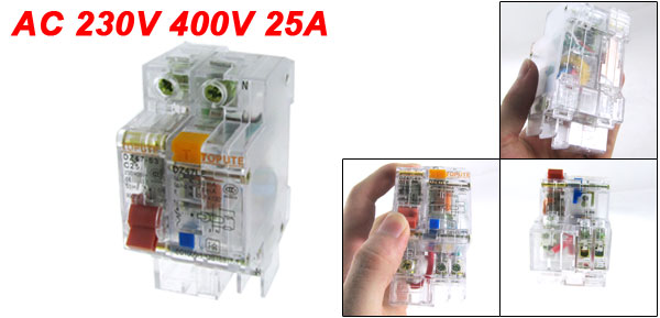 Product Name Earth Leakage Circuit Breaker Features Transparent, 35mm Din Rail Mount Rated Voltage AC 230V/400V Number of Poles 1P+N Rated Current 25A Rated Breaking Capacity 3000A Rated Residual Operating Current <=30mA Rated Residual Non-operating Current <=15mA Rated Residual Operating Time <= 0.1s Overall Size 94 x 44 x 72mm / 3.7" x 1.7" x 2.8"(L*W*H) Material Plastic, Electric Components Weight 174g Package Content 1 x Earth Leakage Circuit Breaker - Reviews