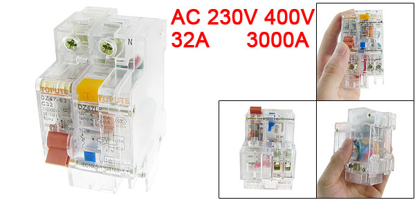 Product Name Earth Leakage Circuit Breaker Features Transparent, 35mm Din Rail Mount Rated Voltage AC 230V/400V Number of Poles 1P+N Rated Current 32A Rated Breaking Capacity 3000A Rated Residual Operating Current <=30mA Rated Residual Non-operating Current <=15mA Rated Residual Operating Time <= 0.1s Overall Size 94 x 44 x 72mm / 3.7" x 1.7" x 2.8"(L*W*H) Material Plastic, Electric Components Weight 177g Package Content 1 x Earth Leakage Circuit Breaker - Reviews