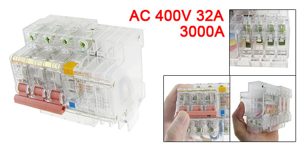 Product Name Earth Leakage Circuit Breaker Features Transparent, 35mm Din Rail Mount Rated Voltage AC 400V Number of Poles 3P+N Rated Current 32A Rated Breaking Capacity 3000A Rated Residual Operating Current <=30mA Rated Residual Non-operating Current <=15mA Rated Residual Operating Time <= 0.1s Overall Size 97 x 94 x 75mm / 3.8" x 3.7" x 3.0"(L*W*H) Material Plastic, Electric Components Weight 377g Package Content 1 x Earth Leakage Circuit Breaker - Reviews