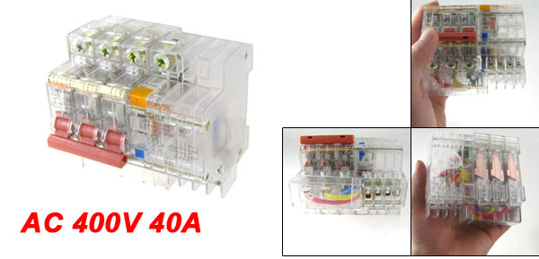 Product Name Earth Leakage Circuit Breaker Features Transparent, 35mm Din Rail Mount Rated Voltage AC 400V Number of Poles 3P+N Rated Current 40A Rated Breaking Capacity 3000A Rated Residual Operating Current <=30mA Rated Residual Non-operating Current <=15mA Rated Residual Operating Time <= 0.1s Overall Size 97 x 94 x 75mm / 3.8" x 3.7" x 3.0"(L*W*H) Material Plastic, Electric Components Weight 379g Package Content 1 x Earth Leakage Circuit Breaker - Reviews