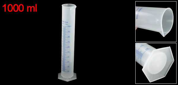 Product Name Graduated Cylider Material Plastic Capacity 1000 ml Tolerance In 20°C ± 10ml Tube Inner Dia 67mm/2.6" Tube Outer Dia 69mm/2.7" Total Height 41cm/16.1" Base Size 12 x 10.5cm/4.7" x 4.1"(L*W) Color Transparent, Blue Net Weight 205g Package Content 1 x Graduated Cylinder - Reviews