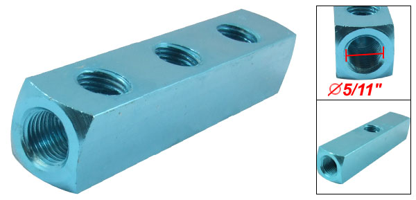 Product Name Manifold Block Threaded Ports Quantity 6 Ports Color Turquoise Material Aluminum Threaded Port Dia 11.6mm / 5/11"(0.456") Overall Size 98 x 20 x 20mm / 3.8" x 0.8" x 0.8" (L*W*H) Weight 67g Package 1 x Manifold Block - Reviews
