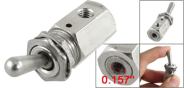 Product Name Toggle Valve Model TV-3S Type 2 Position 2 Way Position Thread Dia. 4mm/0.157'' Mount Thread Dia. 11.8mm/0.464'' Knob Length 18mm/0.7'' Body Size 27 x 16mm/1.1'' x 0.6'' (L*W) Color Silver Tone Material Metal Net Weight 39g Package Content 1 x Toggle Valve - Reviews