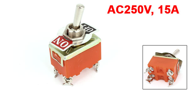 Product Name Toggle Switch Model TYPE 1221 Type DPST Position 2 Positions (ON/OFF) Action Latching Mounting Hole Diamter 12mm / 0.47" Voltage & Current AC250V, 15A Main Body Size 33 x 20 x 20mm / 1.3" x 0.8" x 0.8"(L*W*H) Overall Height 57mm / 2.2" Material Metal & Resin Color Orange, Silver Tone Weight 34g Package Content 1 x Toggle Switch - Reviews