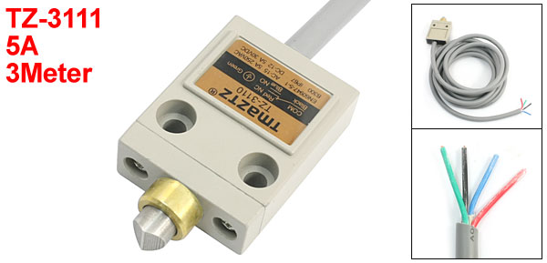 Product Name Limit Switch Model No. TZ-3111 Contact Configuration 1NO+1NC(SPDT) Actuator Type Sealed Pin Plunger Action Type Momentary Ith 5A AC-15 250VAC 5A DC-12 30VDC 5A Waterproof Level IP67 Actuator Size 10 x 7mm/ 0.39" x 0.28"(D*L) Installing Hole Size 5.5mm/0.22"(Dia) Installing Hole Distance 2.5cm/1"(L*W)(Center to Center) Total Length 3Meter/9.8Ft Switch Size 6.5 x 3.8 x 1.6cm/2.6" x 1.5" x 0.63"(L*W*H) Material Plastic, Metal Main Color Gray Net Weight 340g Package Content 1 x Limit Switch - Reviews