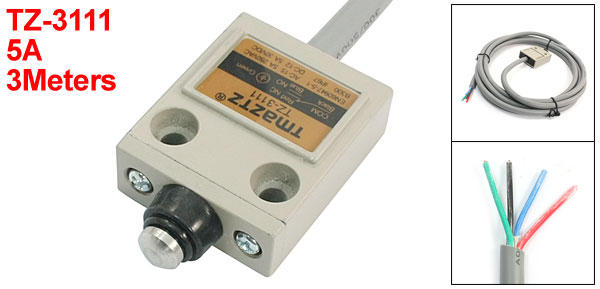 Product Name Limit Switch Model No. TZ-3111 Contact Configuration 1NO+1NC(SPDT) Actuator Type Sealed Plunger Action Type Momentary Ith 5A AC-15 250VAC 5A DC-12 30VDC 5A Waterproof Level IP67 Actuator Size 10 x 5mm/ 0.39" x 0.2"(D*L) Installing Hole Size 5.5mm/0.22"(Dia) Installing Hole Distance 2.5cm/1"(L*W)(Center to Center) Total Length 3Meter/9.8Ft Switch Size 6.5 x 3.8 x 1.6cm/2.6" x 1.5" x 0.63"(L*W*H) Material Plastic, Metal Main Color Gray Net Weight 340g Package Content 1 x Limit Switch - Reviews