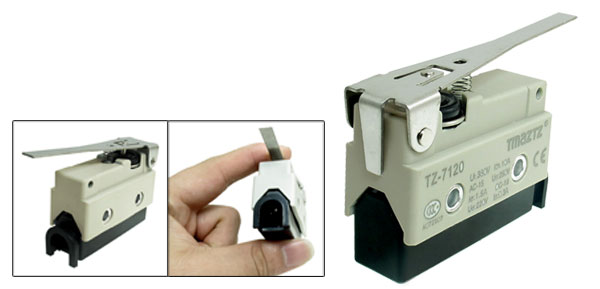 Product Name Micro Limit Switch Model No. TZ-7120 Actuator Action Momentary Actuator Type Long Hinge Lever Contact Type 1 NO, 1 NC, (SPDT) Ui 380V Ith 10A AC-15 Ue: 250V, le: 1.5A DC-13 Ue: 220V, le: 0.3A Actuator Size 7.7 x 1.9cm / 3" x 0.7"(L*W*) Hole Dia 0.43cm / 0.17" Main Body Size 5.4 x 2.1 x 3.7cm / 2.1" x 0.8" x 1.5"(L*W*H) Overall Height 4.6cm / 1.8" Material Metal, Plastic & Rubber Color As Picture Show Net Weight 49g Package Content 1 x Micro Limit Switch - Reviews