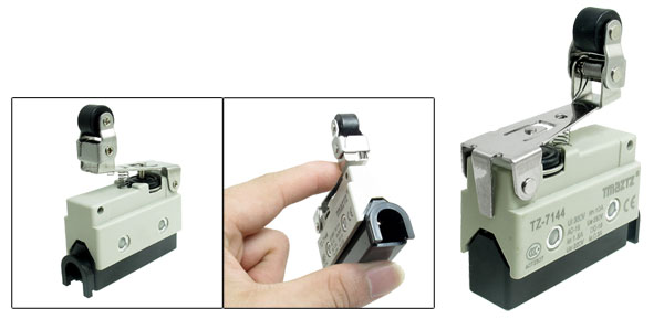 Product Name Limit Switch Model No. TZ-7144 Actuator Action Momentary Actuator Type Short Hinge Roller Lever Contact Type 1 NO, 1 NC, (SPDT) Ui 380V Ith 10A AC-15 Ue: 250V, le: 1.5A DC-13 Ue: 220V, le: 0.3A Actuator Size 4.7 x 1.9cm / 1.9" x 0.7"(L*W*) Hole Dia 0.43cm / 0.17" Main Body Size 5.4 x 2.1 x 3.7cm / 2.1" x 0.8" x 1.5"(L*W*H) Overall Height 7.3cm / 2.9" Material Metal, Plastic & Rubber Color Grey, Black Net Weight 55g Package Content 1 x Limit Switch - Reviews
