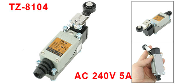 Product Name Limit Switch Model No. TZ-8104 Actuator Action Momentary Actuator Type Rotary Roller Lever Contact Type 1NC + 1NO(SPDT) Rated Voltage 240V Rated Current 5A Roller Wheel Size 17 x 6mm / 0.7" x 0.2"(Dia.*T) Mount Screw Hole Diameter 4mm/0.16" Mount Screw Hole Distance 21 x 56mm/0.8" x 2.2"(L*W) Total Size 125 x 28 x 25mm / 4.9" x 1.1" x 1.0"(L*W*T) Material Resin, Plastic & Metal Net Weight 142g Package Content 1 x Limit Switch