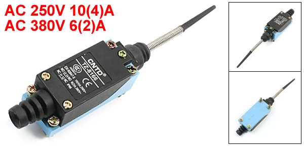Product Name Limit Switch Model No. TZ-8166 Actuator Action Momentary Actuator Type Wobble Stick, Automatic Reset Contact Type 1NC + 1NO Rated Voltage & Current AC 250V, 10(4)A