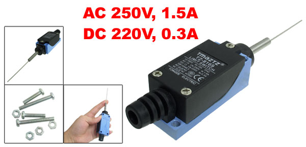 Coil Spring Size 5 x 26mm / 0.2 x 1"(Dia.*L) Stick Length 80mm / 3.1" Body Size 88 x 28 x 24mm / 3.5" x 1.1" x 0.9"(L*W*H) Mounting Hole Diameter 4.3mm / 0.17" Mounting Hole Distance 56 x 21mm / 2.2" x 0.83"(L*W) Material Rubber, Plastic & Metal Net Weight 113g Package Content 1 x Limit Switch