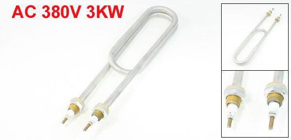 Product Name Electric Heating Tube Shape Multi-bend U Type Material Stainless Steel Rated Voltage AC 380V Power 3KW Bar Diameter 12mm / 0.47" Heater Size (Approx.) 35 x 7cm / 14" x 2.75" (L*W) Thread Diameter 18mm / 0.7" ; 5mm / 0.2" Color Silver Tone Weight 613g Package Content 1 x U Shaped Electric Heating Tube