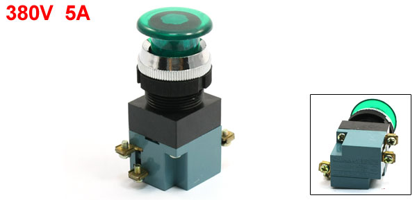 Ui 380V Ith 5A Green Non Lock Mushroom Push Button Switch DPST NO NC
