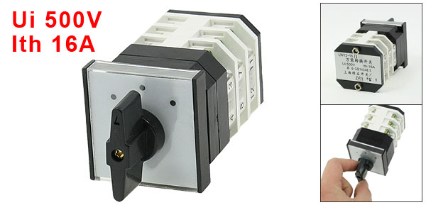 Product Name Changeover Switch Model No. LW12-16/3 Ui 500V Ith 16A Positions 1-0-2(on/off/on) Terminal Number 12 Screw Terminals Body Size 50 x 50mm / 2" x 2"(L*W) Overall Size 50 x 50 x 100mm / 2" x 2" x 4"(L*W*H) External Material Plastic Net Weight 241g Package Content 1 x Changeover Switch