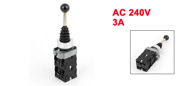 Product Name Joystick Switch Model No. XD2PA24CR Contact 4 NO Voltage & Current Ui: 600V, Ith: 10A Rating Voltage AC 240V, 3A Uimp 6kV Mount Hole Dia 22mm / 0.87" Lever Length 65mm / 2.6" Main Body Size 2.9 x 3cm / 1.1" x 1.2"(L*W) Overall Size (Approx.) 4 x 3 x 14.5cm / 1.57" x 1.2" x 5.7" (L*W*H) Material Rubber, Plastic, Electric Parts Net Weight 141g Package Content 1 x Joystick Switch - Reviews