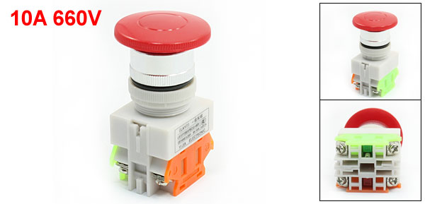 Ui 660V Ith 10A Red Mushroom Button Momentary Pushbutton Switch DPST