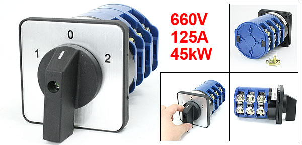 Product Name Changeover Switch Model No. LW28-125/3 Ui 660V Ith 125A Power 45kW Positions ON/OFF/ON Terminal Number 12 Overall Size(Approx.) 90 x 90 x 160mm / 3.5" x 3.5" x 6.3"(L*W*H) Material(External) Plastic Net Weight 886g Package Content 1 x Changeover Switch