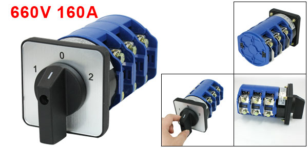 Product Name Changeover Switch Model No. LW28-160/3 Ui 660V Ith 160A Power 45kW Positions ON/OFF/ON Terminal Number 12 Overall Size(Approx.) 85 x 85 x 180mm / 3.3" x 3.3" x 7"(L*W*H) Material(External) Plastic Net Weight 1057g Package Content 1 x Changeover Switch