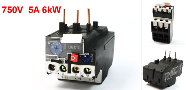 DetailsUi 750V Ith 5A 6kW Breaker Volt LR2-D1316C 1NO 1NC 3 Pole Thermal Overload Relay  Product Name Thermal Overload Relay Model LR2-D1316C Contact Type 1NC 1NO 3 Phase Ui 750V Ith 5A Uimp 6kW AC-15 24V 100VA, 48V 200VA, 110V 400VA, 230V 600VA, 400V 600VA Total Size (Approx.) 8.9 x 6.8 x 4.3cm / 3.5" x 2.7" x 1.7" (L * W * T) Color Black, White Weight 151g Package Content 1 x Thermal Overload Relay