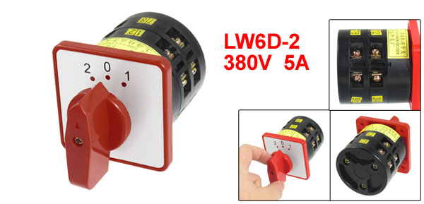 Product Name Changeover Switch Model No. LW6D-2 Ui 380V Ith 5A Ue 380V Installing Holes Dia 4.2mm/ 0.16" Bottom Dia 5.5cm/ 2.1"(L*W) Overall Size 6 x 6 x 9cm / 2.4" x 2.4" x 3.5" (L*W*H) External Material Plastic Color Red, Black Net Weight 224g Package Content 1 x Changeover Switch - Reviews