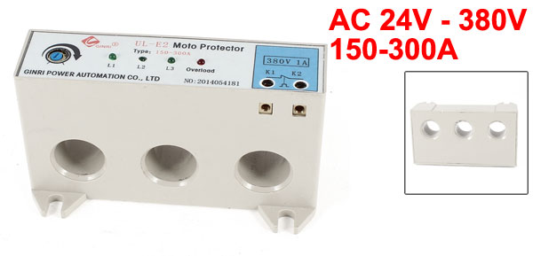 Product Name Motor Protector Type UL-E2 Reset Time 60 ± 10s Work Mode Uninterrupted Work Mode Applicable Voltage AC 24V - 380V / 45 ~ 60 Hz Current Adjustment Scope 150-300A Applicable Motor Power 64 - 160KW Wire Hole Dia. 20mm/0.79" Control Current of Output Interface 1A/380Vac Environment Temperature -10C - +50C Relative Humidity <=90% Atmospheric Pressure 80Kpa-110Kpa Altitude no more than 200m Total Size 12.4 x 6.8 x 4.4cm/4.9" x 2.7 " x 1.7"(L*W*H) Weight 208g Package Content 1 x Motor Protector