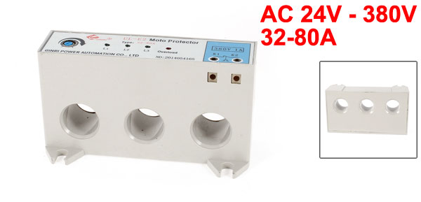 Product Name Motor Protector Type UL-E2 Reset Time 60 ± 10s Work Mode Uninterrupted Work Mode Applicable Voltage AC 24V - 380V / 45 ~ 60 Hz Current Adjustment Scope 32-80A Applicable Motor Power 16 - 40KW Wire Hole Dia. 20mm/0.79" Control Current of Output Interface 1A/380Vac Environment Temperature -10C - +50C Relative Humidity <=90% Atmospheric Pressure 80Kpa-110Kpa Altitude no more than 200m Total Size 12.4 x 6.8 x 4.4cm/4.9" x 2.7 " x 1.7"(L*W*H) Weight 194g Package Content 1 x Motor Protector