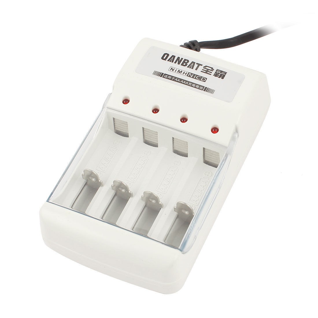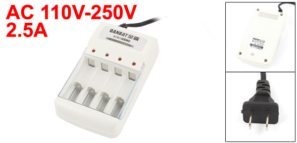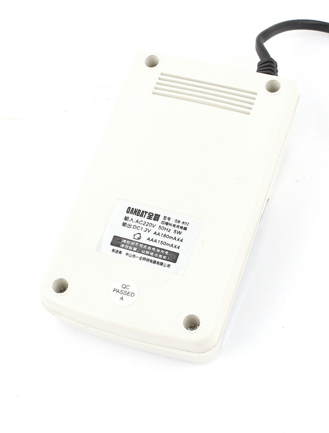 Fit for for 4xAA/4xAAA NiMH/NiCD Battery Input US Plug AC 110V-250V 2.5A Net Weight 166g Country of Manufacture CHINA Model QB-802 Package Content 1 x Battery Charger Material Plastic, Metal Output DC 1.2V 4x180mA AA , DC 1.2V 4x150mA AAA Lead Length 72cm/28.3" Body Size 117 x 68 x 37mm/4.6" x 2.6" x 1.5"(L*W*H) - Reviews
