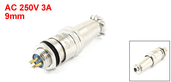 Universal Panel Mount 9mm Thread 4 Pin Aviation Connectors Plugs AC 250V 3A