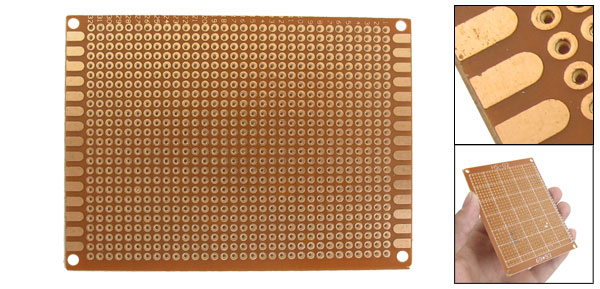 Product Name Universal PCB Board Hole Dia(Approx) 0.1mm / 0.039" Hole Pitch(Approx) 2.54mm / 0.1" Size(Approx) 9.3 x 7cm /3.6" x 2.75"(L*W) Thickness(Approx) 0.115cm / 0.04“ Material FR-4 Color Copper Tone Weight 12g Package Content 1 x Universal PCB Board - Reviews