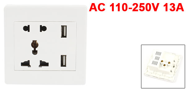 Product Name USB Wall Plate Material Plastic, Metal Color White Outlet Type 2 Pin EU US ,3 Pin AU EU UK US,2 x USB 2.0 Port Number of Gangs 2 Input AC 110-250V Rated Current 13A Size 8.6 x 8.6 x 3.3cm/ 3.4" x 3.4" x 1.3"(L*W*T) Weight 95g Package Content 1x USB Wall Plate