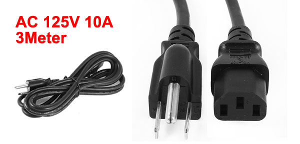 Product Name Power Adapter Cable Connector Type C13 Socket Plug Type US 3 Pin Plug Input AC 125V 10A Color Black Material Plastic, Metal Total Length 3meter /10Ft Weight 248g Package 1 x Power Adapter Cable - Reviews