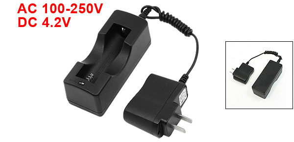 Product Name Battery Charger Applicable for 1 x 18650 Li-ion Rechargeable Battery(No Include Battery) Plug Type 2 Flat Pin US Plug Indicator Light 1 LED Input AC 100-250V 50/60Hz Output DC 4.2V 500mA Color Black Size 10.5 x 4.2 x 3.9cm/4.1" x 1.7" x 1.5"(L*W*T) Cable Length 50cm/19.7" Shell Material Plastic Net Weight 87g Package Content 1 x Battery Charger - Reviews