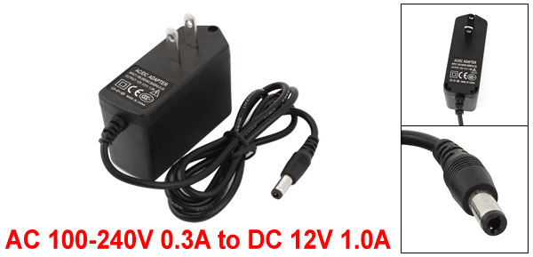 US Plug AC 100-240V 0.3A to DC 12V 1.0A 5.35mm x 2mm Connector Power Adapter