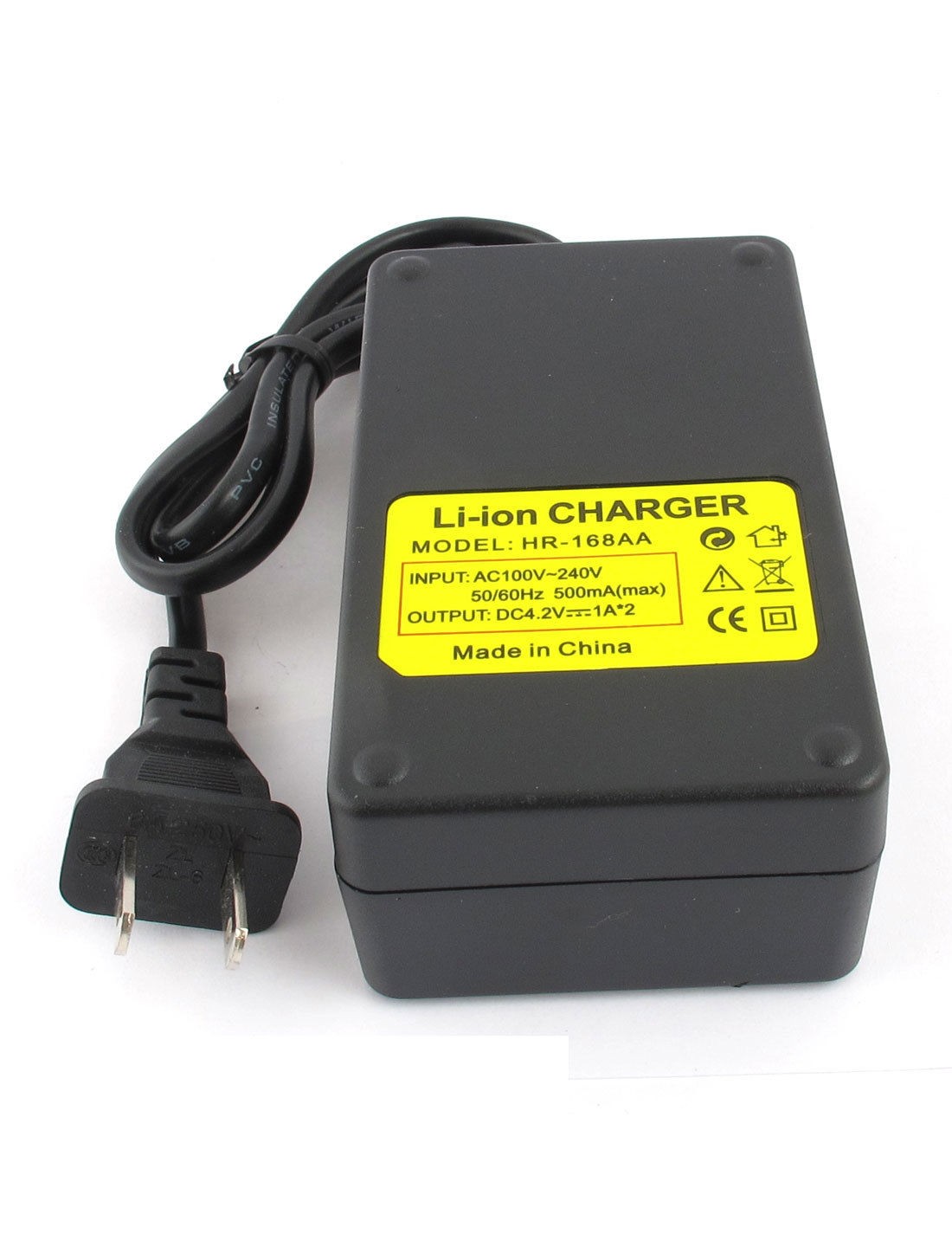 Main Color Black Input AC 100-240V 50/60Hz 500mA(max) Fit for 2 x 18650 Rechargeable Li-ion Battery Brand DMiotech Net Weight 102g Country of Manufacture CHINA Cable Length 70cm / 27.6'' Package Content 1 x 18650 Charger Base Charger Base Size 10.5 x 6 x 4cm / 4.1" x 2.4" x 1.6"(L*W*H) Plug Type US Plug Material Hard Plastic, Metal Output DC 4.2V 1A*2 - Reviews