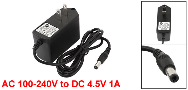DetailsUS Plug AC 100-240V to 5.5x2.1mm DC 4.5V 1A Power Supply Adapter Charger  Main Color Black Input AC 100-240V Brand DMiotech Net Weight 69g Country of Manufacture CHINA Package Content 1 x Power Adapter Material Plastic Output DC 4.5V 1A Size 70 x 42 x 28mm / 2.7" x 1.7" x 1.1"(L*W*H)