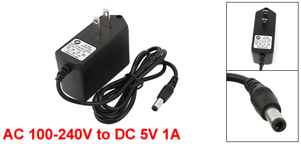 US Plug AC 100-240V to 5.5x2.1mm DC 5V 1A Power Supply Adapter Charger