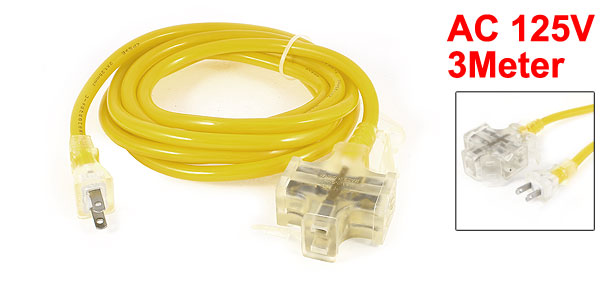 DetailsUS Plug AC 125V 15A AU US Socket 10Ft Cord 3 Outlet Power Splitter w Cover  Product Name Electric Socket Socket Type AU US Socket Plug Type US Cable Diameter 9mm/ 0.35" Socket Number 3 Voltage AC 125V Current 15A Cable Length 3meter/10ft Size 7.1 x 5.8 x 2.6cm/ 2.8" x 2.3" x 1"(L*W*H) Material(External) Plastic Main Color Yellow, Clear Weight 377g Package Content 1 x Electric Outlet Power Socket