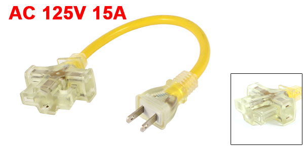 US Plug AC 125V 15A AU US Socket 3 Outlet Power Adapter 13.8" 35cm Yellow