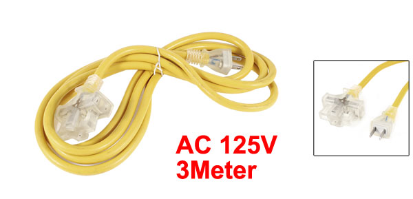 US Plug AC 125V 15A AU US Socket Power Cable 3 Outlet Splitter Yellow 3 Meters