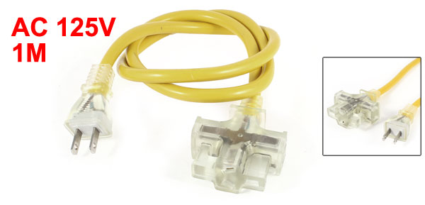 US Plug AC 125V 15A AU US Socket Power Cord 3 Outlet Splitter Yellow 1M