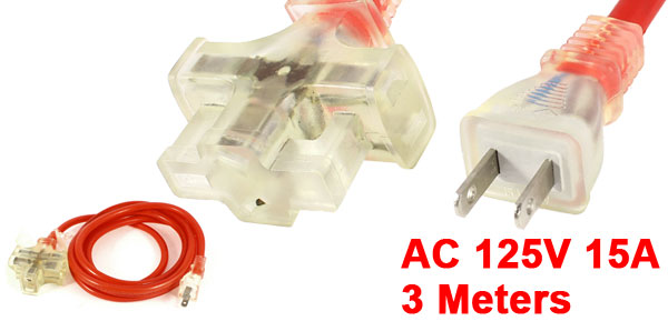 US Plug AU US Socket Extension 3 Outlet Power Converter Red 10ft AC 125V 15A