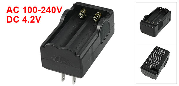 Product Name Battery Charger Applicable for 2 x 18650 Rechargeable Battery(No Include Battery) Plug Type Folding 2 Flat Pin US Plug Indicator Light 1 LED Input AC 100-240V 150mA 50/60Hz Output DC 4.2V 650mA Color Black Size 8.5 x 4.7 x 3.8cm/3.3" x 1.9" x 1.5"(L*W*T) Shell Material Plastic Net Weight 58g Package Content 1 x Battery Charger - Reviews