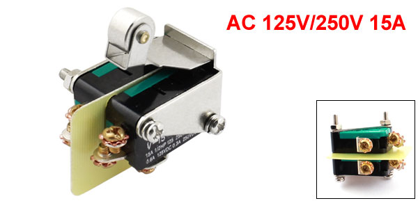 DetailsV-15-1C25 AC 125V/250V 15A Double SPDT Momentary Roller Lever Micro Switch  Product Name Micro Switch Model No. V-15-1C25 Type Double SPDT Rated Voltage & Current AC 125V/250V 15A Contact Type 1NO+1NC Actuator Momentary Push Button Terminal 2x 3 Screw Terminal Overall Size(Approx.) 45 x 39 x 34mm / 1.8" x 1.6" x 1.3"(L*W*T) Material Plastic, Metal Weight 32g Package Content 1 x Micro Switch