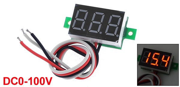 Red Measuring Range DC0-100V Input Voltage DC3-30V Total Size 33 x 15 x 10mm/ 1.3" x 0.6" x 0.4"(L*W*H) Mount Hole Dia. 2mm/ 0.08" Cable Length 15.5cm/ 6.1" Main Material Plastic, Iron, PCB Color Black, White, Green Weight 6g Package Content 1 x Digital Voltmeter Meter Module - Reviews