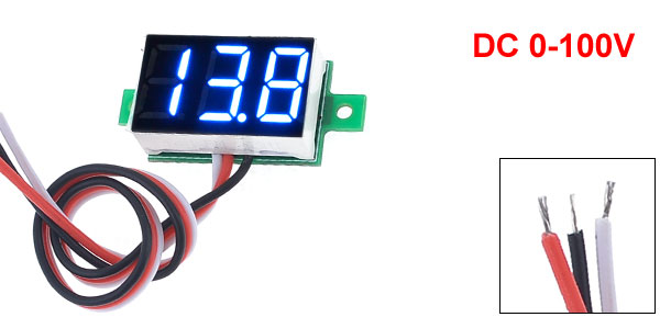 V20D Tri-Wire Blue LED Display 3-Digit DC Digital Voltmeter 0-100V