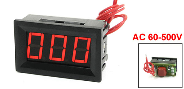 Product Name Digital Voltmeter Model V27A Display 3 Digits Red LED Measurement Range AC 60-500V LCD Display Size 3.5 x 1.6 cm / 1.4" x 0.63" (L*W) Total Size 48 x 29 x 29 cm / 1.9" x 1.1" x 1.1" (L*W*H) Panel Mounting Size 45 x 27 mm / 1.8" x 1.1" (L*W) Cable Length 19.5cm / 7.7" Material Plastic, Iron, PCB Color Black, Red Weight 26g Package Content 1 x Digital Voltmeter